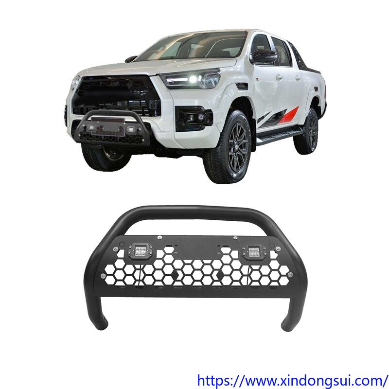 This bull bar is built for extra strength, featuring a welded steel frame of 3-inch diameter, heavy-wall tubing
